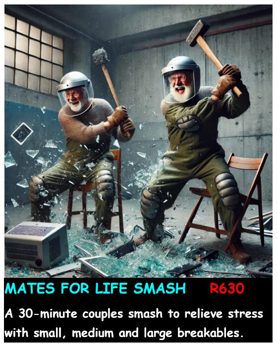 4 Date Smashing packages from R650 per couple to R800 vir 3 people