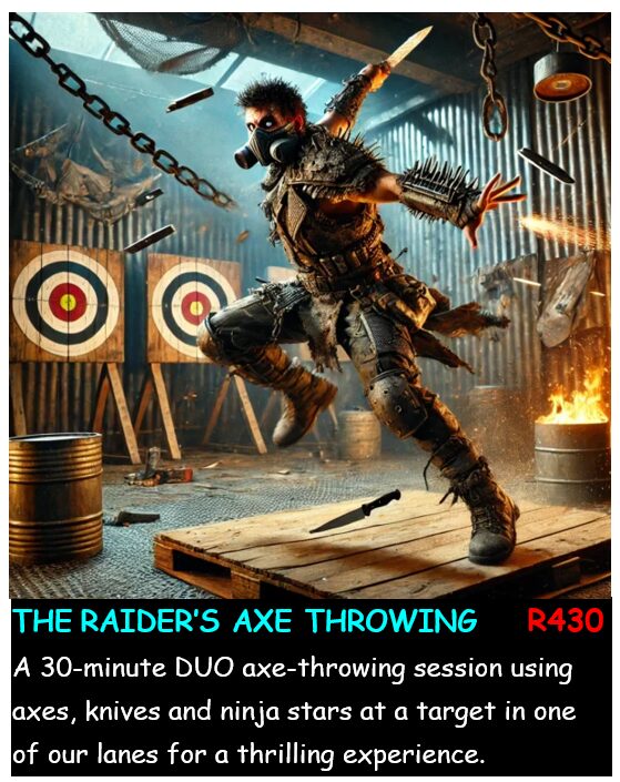 4 Maniaxe packages From R95 pp to R350 for 4 people.